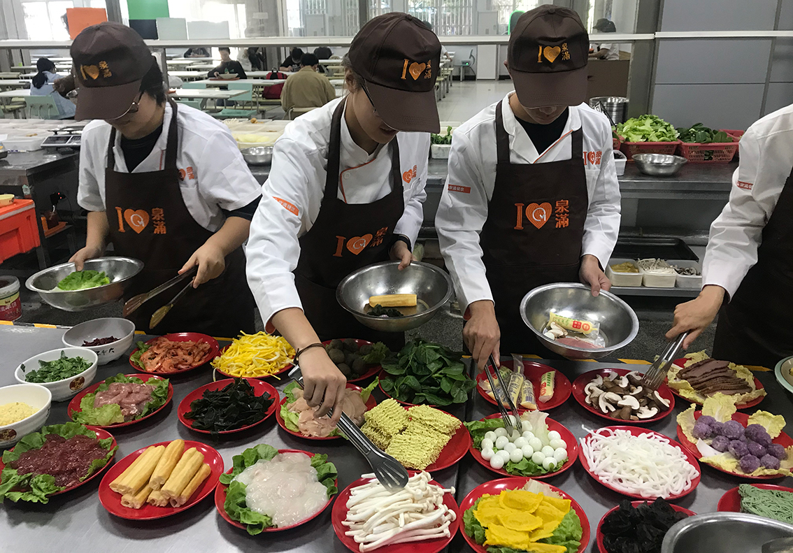 在這丹桂飄香的金秋十月?,泉滿東大香園食堂再次迎來了以“勞動育人”為主題的大學生第二課堂活動。在東大香園食堂經(jīng)理的安排下,參加活動的學生們中午如約而至。更衣室換上潔白的廚師服后,跟隨主廚的腳步,井然有序進入后廚。?&nb...
